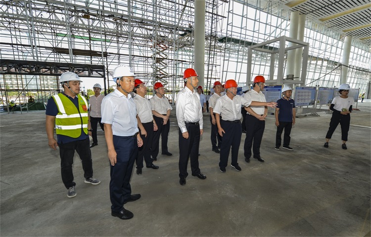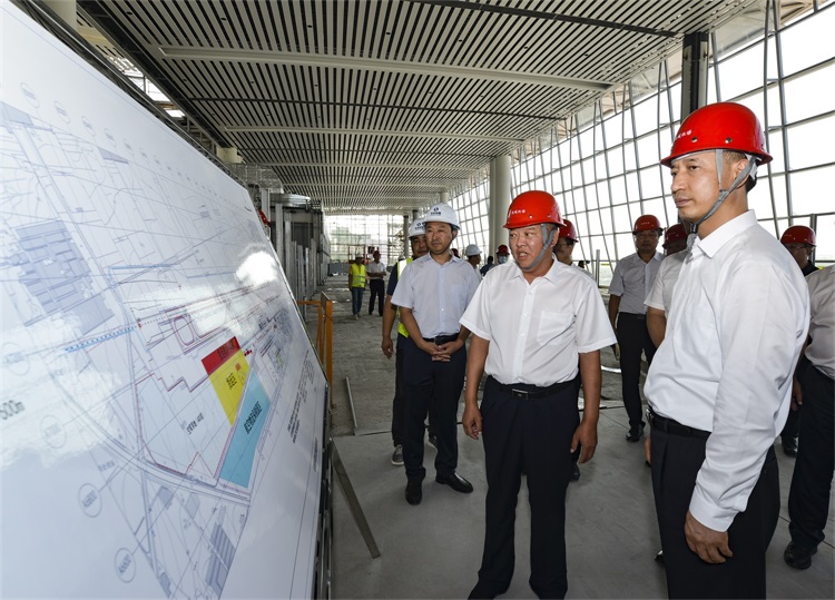 盧東亮深入工地現(xiàn)場,認(rèn)真聽取運(yùn)城民航機(jī)場有限公司董事長郝榮生的匯報,詳細(xì)了解項目進(jìn)展及站前立體交通樞紐、邊防檢查站執(zhí)勤業(yè)務(wù)用房、航食廠區(qū)、航空加油站、航空油庫等配套設(shè)施建設(shè)情況,并對項目到位的安全文明施工措施、熱火朝天的建設(shè)景象給予了高度肯定。目前,項目正在進(jìn)行航站樓裝飾裝修及玻璃幕墻、空調(diào)強(qiáng)弱電的安裝工作。在保障安全和質(zhì)量的前提下,近400名工人正全力以赴趕進(jìn)度,確保如期完成建設(shè)任務(wù)。